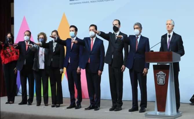 También agradeció a quienes este día dejan su cargo en el Gabinete estatal, y reconoció el trabajo de Alejandro Ozuna, a Maribel Cervantes, Alejandro Fernández Campillo, Andrés Massieu, Rocío Díaz Montoya, Evelyn Osornio y Raymundo Martínez Carbajal, quienes encabezaban las Secretarías General de Gobierno, Seguridad, Educación, Desarrollo Urbano y Metropolitano, Desarrollo Agropecuario, Turismo y Movilidad, respectivamente.