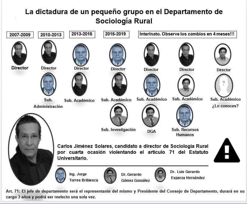 Después como se observa en esta gráfica Carlos Jiménez Solares regresó como director interino en el 2019, pero aún así se registró para ser nuevamente candidato a la dirección de Sociología Rural.
