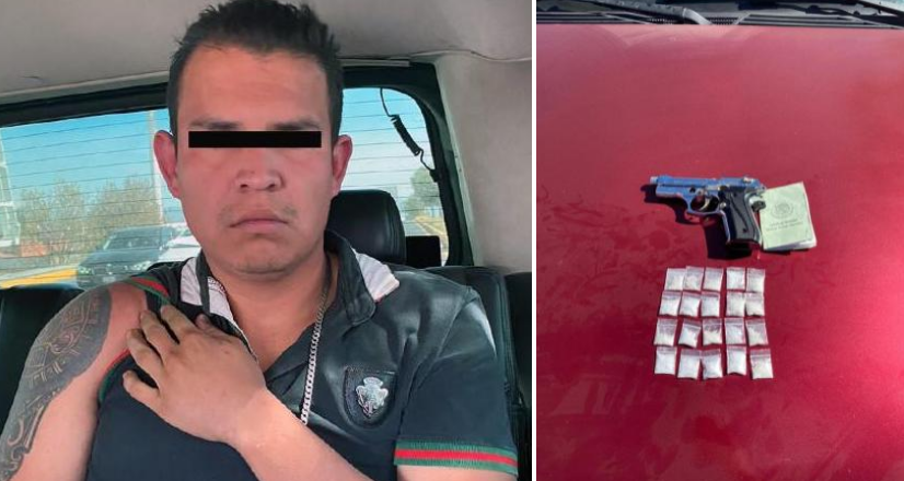 En una acción conjunta realizada en la carretera Toluca-Tenango del Valle, Agentes de Investigación del Grupo Táctico Operativo Toluca (GTO) de esta Fiscalía General de Justicia del Estado de México (FGJEM) y de la Secretaría de Seguridad Estatal (SS) detuvieron a César Augusto “N”, quien tenía en su poder envoltorios con droga y una réplica de arma de fuego.
