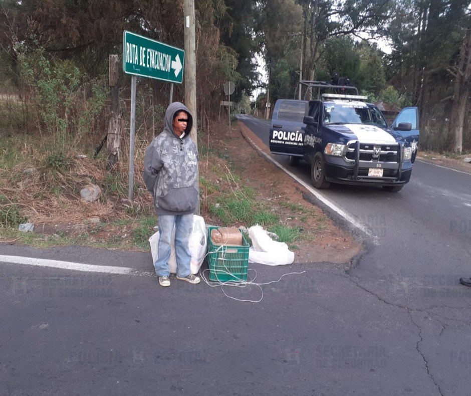 Mientras los policías estatales realizaban patrullajes preventivos sobre la carretera Atlautla-Ecatzingo en el kilómetro 5+500, detectaron a un hombre que se encontraba a la altura del paraje crucero Tepecoculco Atlautla, quien actúo de manera sospechosa ante su presencia, motivo por el cual se aproximaron a él, instante en el que el sujeto mencionó que estaba esperando el transporte público.