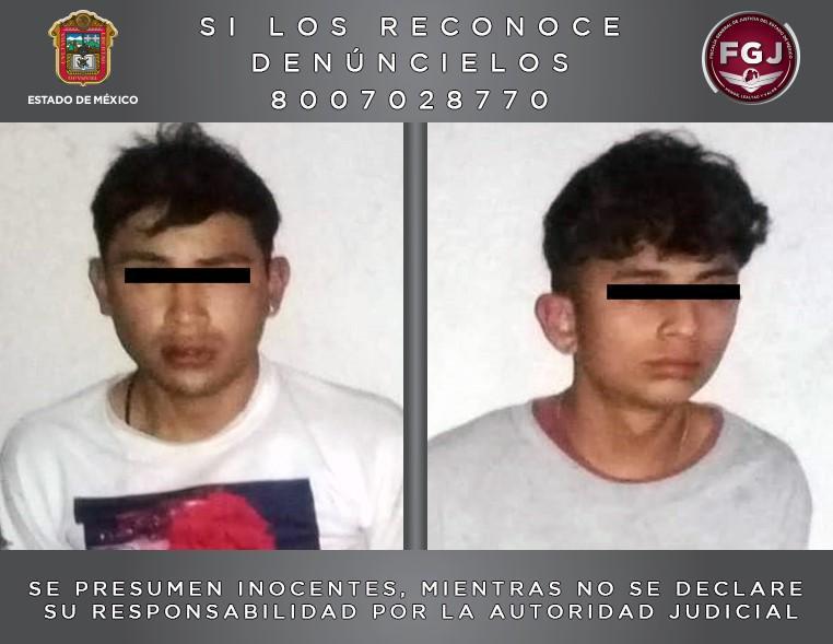 Agentes de Investigación del Grupo Táctico Operativo Ecatepec (GTO), de esta Fiscalía General de Justicia del Estado de México (FGJEM) detuvieron a dos sujetos quienes se identificaron como José Alberto “N” de 25 años de edad y Bryan Israel “N”, de 19 años, quienes son investigados por su probable participación en el asalto a una persona, en este municipio.