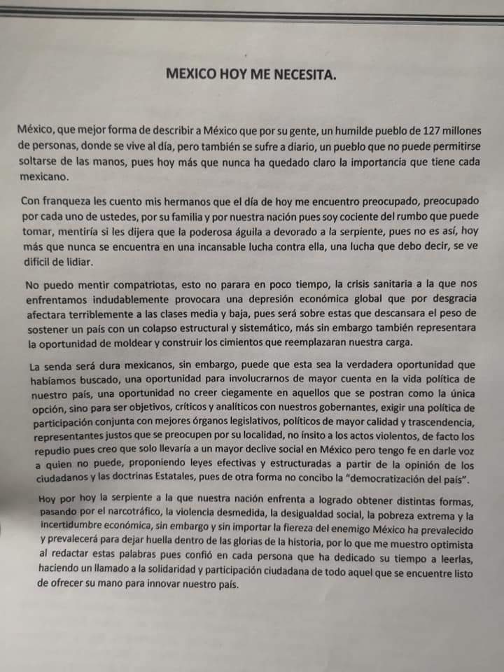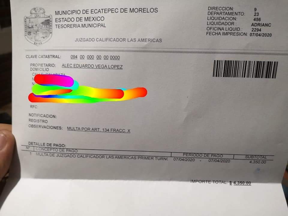 Con la idea de concientizar a la población, sobre los efectos económicos que trae la actual pandemia del Covid-19, un joven estudiante repartió panfletos en calles de este municipio mexiquense, sin embargo fue detenido por la policía Municipal sin explicación alguna, por lo que nos hizo llegar su denuncia a la redacción de reporteros en movimiento para explicar su caso y confirmar que por la detención tuvo que pagar $4350 pesos, para salir libre, supuestamente por incurrir en actos ilegales según el artículo 134 en su fracción X.