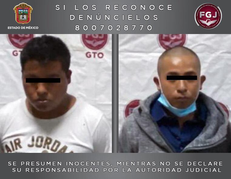 Elementos del Grupo Táctico Operativo Naucalpan (GTO) de la Fiscalía General de Justicia del Estado de México (FGJEM) en conjunto con policías de la Secretaría de Seguridad del Estado de México (SS) detuvieron a dos sujetos identificados como Jorge “N” de 24 años de edad y a Erasmo “N”, de 23 años, quienes tenían en su poder un kilogramo de marihuana.
