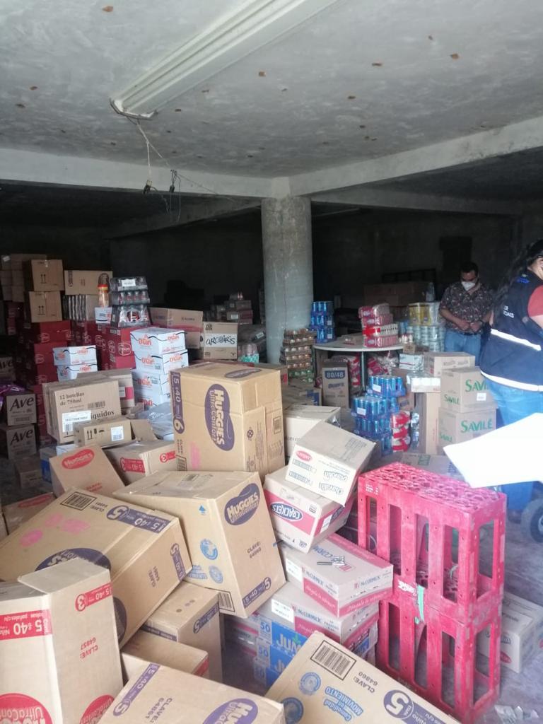 Fueron encontradas mil 561 cajas con artículos como café, harina, galletas, aceite, mayonesa y frutas en almíbar. Así como papel de baño, jabón, limpiadores de piso, pilas, medicamentos y cigarros.