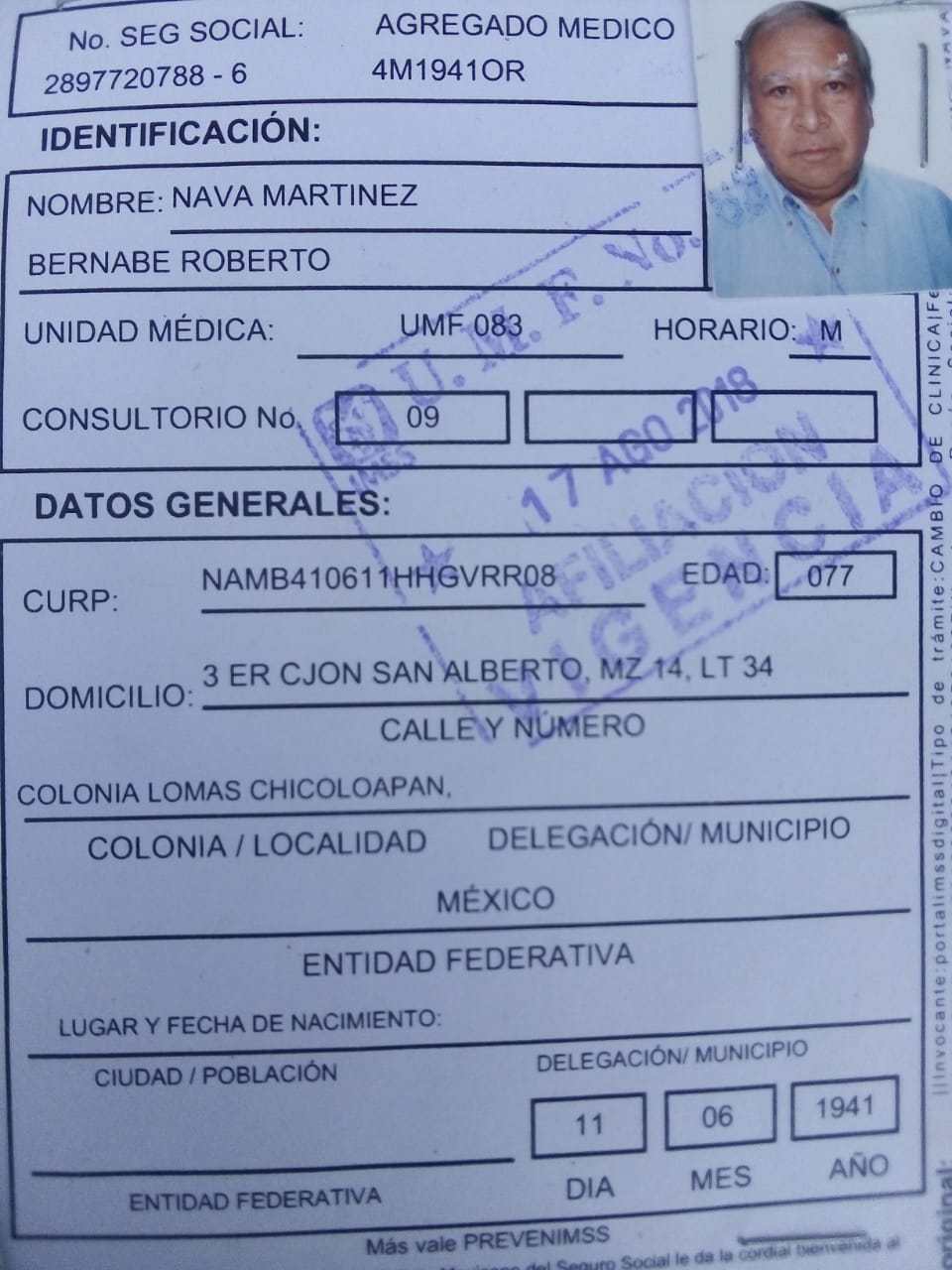 Familiares del paciente de nombre Bernabé Roberto Nava Martínez, de 77 años de edad, comentaron que ingresó el día 26 de Marzo 2020, al Hospital General de Zona 197, ubicado en Texcoco, por un padecimiento de derrame cerebral, por el cual lo tienen entubado y sedado en ese nosocomio.