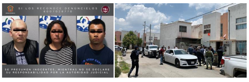 Durante la diligencia de cateo fueron detenidas tres personas identificadas como Patricia “N”, de 37 años de edad; Juan Carlos “N”, de 25 años y José David “N”, de 36 años, quienes fueron presentadas ante el Agente del Ministerio Público, quien determinará su situación legal, sin embargo, se les debe considerar inocentes hasta que sea dictada una sentencia condenatoria en su contra.