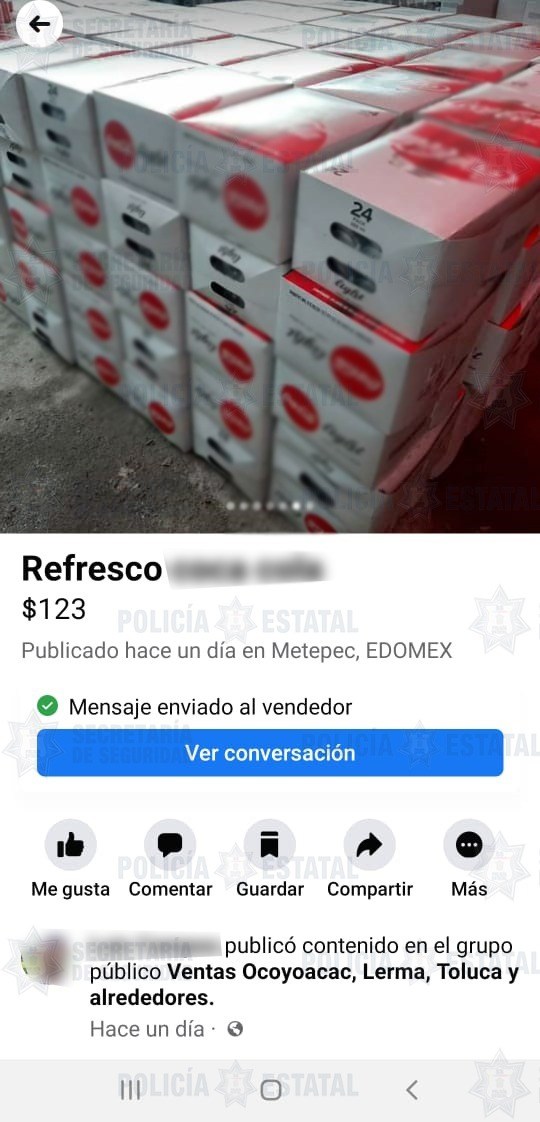 En acción coordinada, elementos de la Secretaría de Seguridad (SS) y de la Fiscalía General de Justicia del Estado de México (FGJEM), localizaron un inmueble en el que se comercializaban productos pertenecientes a una empresa refresquera que fueron hurtados junto al camión en días anteriores; en el sitio también se detuvo a dos sujetos probablemente implicados.