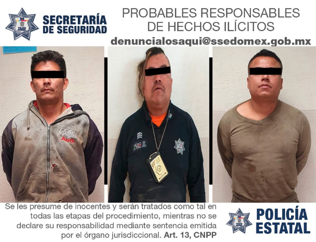 De inmediato, policías estatales se desplazaron a la zona para corroborar dicha denuncia, sorprendiendo a tres sujetos quienes al notar la presencia de los efectivos internaron huir, logrando su detención metros adelante de quienes se identificaron como Luis “N”, Jorge Javier “N” y José Luis “N” de 43, 47 y 24 años de edad respectivamente.