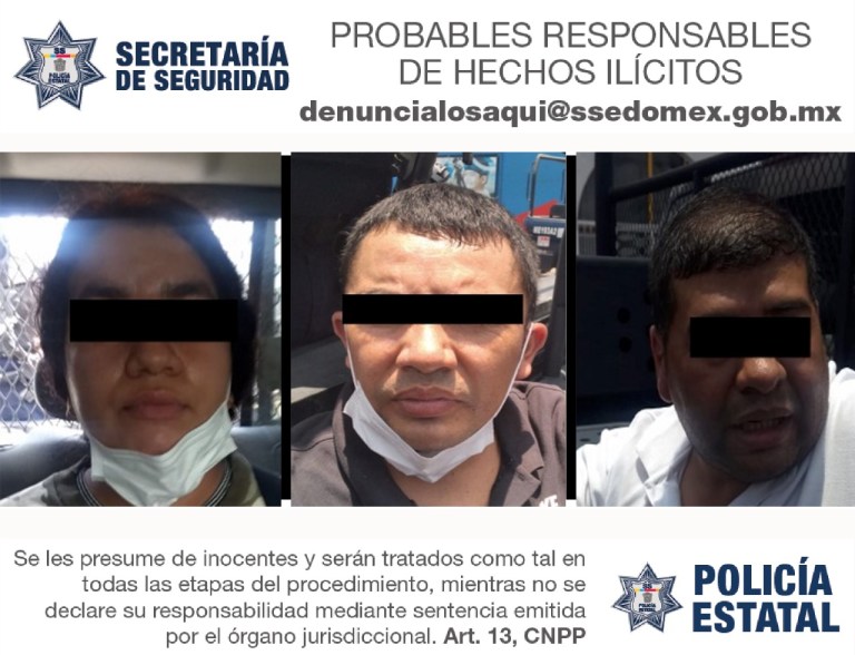 Como resultado de la intervención inmediata de elementos de la Secretaría de Seguridad (SS), tres personas fueron aprehendidas por su probable responsabilidad en el delito de robo a casa habitación.