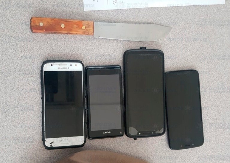 De manera inmediata, los efectivos iniciaron un operativo de búsqueda y localización en el área, logrando la captura de Víctor “N” de 57 años de edad a quien le fueron asegurados cuatro equipos de telefonía celular de diferentes marcas, así como un cuchillo.