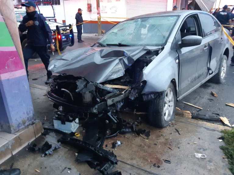 Los policías municipales relataron que continúo la persecución por calles de dicha comunidad y en la esquina de las avenidas Recursos Hidráulicos y Fresno el conductor del automóvil Vento pierde el control al dar la vuelta y se impacta de frente contra un poste y después con una tlapalería, donde estaban las tres mujeres, a las que arrolla.