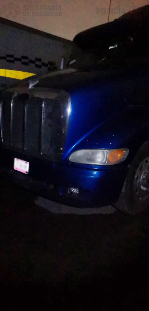 Policías adscritos a la Dirección General de Combate al Robo de Vehículos y Transporte (DGCRVyT), que realizaban recorridos estratégicos en el municipio, recibieron un aviso por parte del Centro de Monitoreo de la SS, informándoles sobre el reporte de robo emitido por una empresa de localización satelital de vehículos quien les solicitó el apoyo para ubicar un tractocamión marca Peterbilt, el cual lleva anclada una caja seca con mercancía que había salido de su ruta.