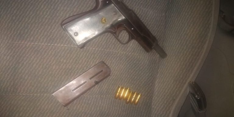 Tras marcarles el alto, dos hombres y una mujer bajaron de la camioneta, en cuyo interior se encontró un arma de fuego al parecer calibre 9mm, con la que se presume amenazaban a sus víctimas.