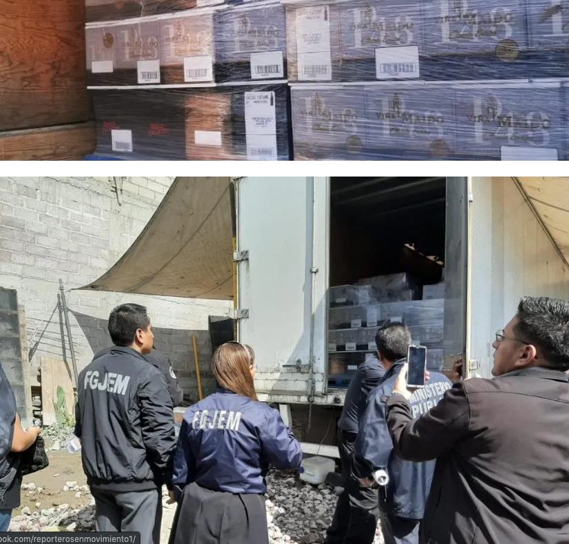 Después de que la orden de cateo fue otorgada, elementos de la Fiscalía Regional de Cuautitlán Izcalli se trasladaron al sitio en donde hallaron un vehículo marca Freigthtliner, tipo tractocamión, con un semirremolque tipo caja seca, dentro de éste fueron encontradas 20 tarimas con botellas de vino.