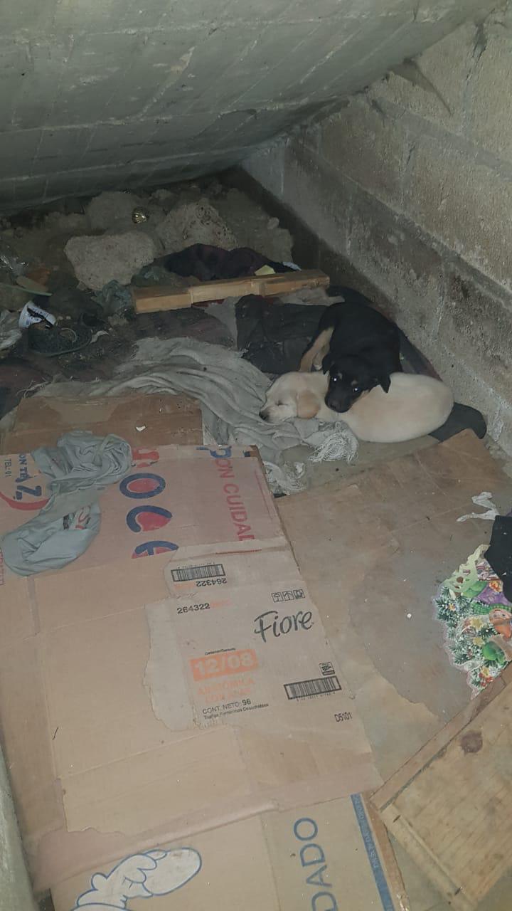 Los inspectores realizaron un recorrido donde se percataron de la presencia de dos caninos criollos de aproximadamente dos meses de edad, los cuales se encontraban sin agua ni alimento, y en condiciones no adecuadas para su resguardo y sin acreditar atención médica, así como bajos de peso y en espacios sucios.