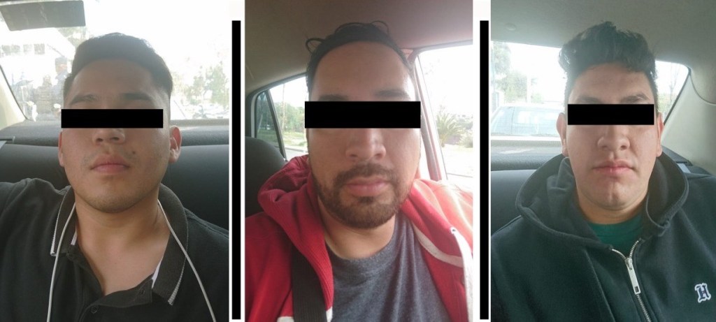 Por este motivo, los elementos estatales fueron alertados y lograron el aseguramiento del automóvil en el que viajaban tres individuos, que responden a los nombres de Luis Edgar “N”, Dilan Emiliano “N”, y Edwin “N” de 35, 19 y 23 años de edad, respectivamente.