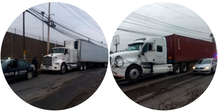 Derivado de un reporte emitido por personal del Centro de Control, Comando, Comunicación, Cómputo y Calidad (C5), sobre el robo de dos tractocamiones, uno con caja de color rojo y la segunda de color blanco, los cuales transportaban llantas de automóviles, los Policía Estatal implementaron un operativo de búsqueda y localización.