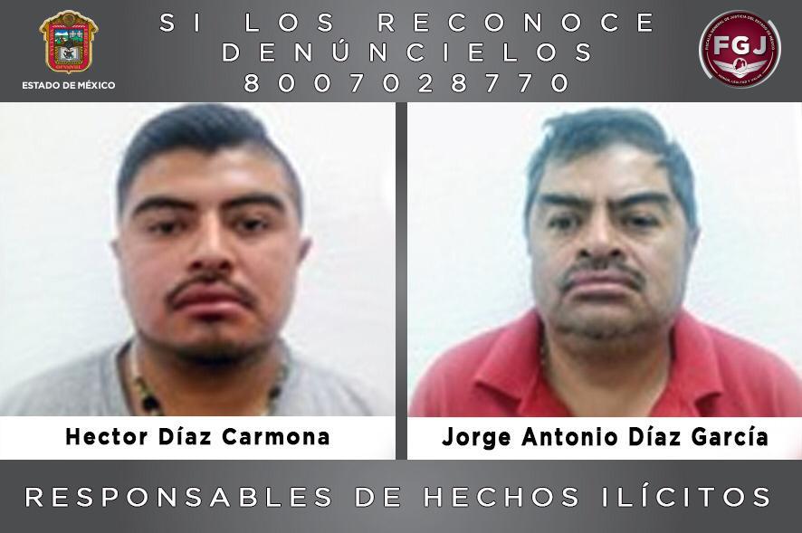 Esta Institución integró la carpeta de investigación respectiva por estos hechos y con el avance en la indagatoria fue posible identificar la probable participación de Díaz García y Díaz Carmona en ambos delitos, por ello fueron detenidos e ingresados al Centro Penitenciario y de Reinserción Social de Chalco.