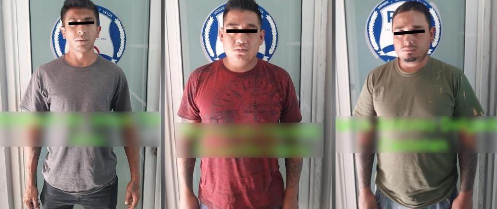Agentes de Investigación de la Fiscalía General de Justicia del Estado de México (FGJEM) aseguraron a tres sujetos identificados como Abraham “N”, de 28 años de edad; Marco Antonio “N”, de 32 años y Raymundo “N”, de 37 años de edad, quienes son investigados por su probable participación en la extorsión y lesiones causadas a un empleado de una empresa de gas estacionario en este municipio.