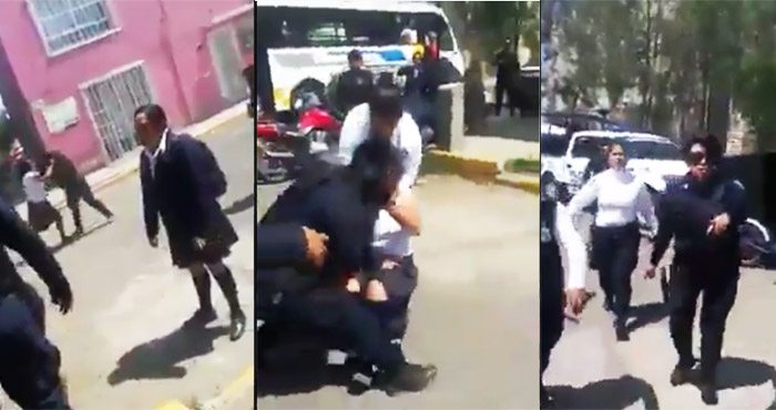 De acuerdo a las imágenes captadas en video y difundidas a través de redes sociales, se puede ver como al menos tres uniformados tratan de someter al tío de las menores; otro de los elementos tiene sujeta del cuello a una de las menores mientras la otra víctima sigue peleando cuerpo a cuerpo con una mujer policía.