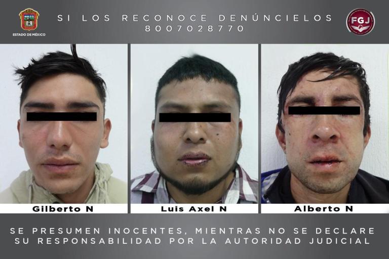 Los detenidos fueron identificados como Gilberto “N”, alias “El Güero”, de 25 años de edad; Luis Axel “N”, de 23 años y Alberto “N”, alias “El Loco”, de 31 años.