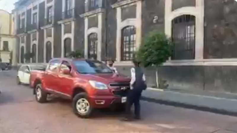 En el video se puede observar como la policía pese a que se encuentra frente a la camioneta de color rojo y esta avanza intenta quitar la placa del automóvil, en lo que se acercan varias personas al observar que el conductor continúa avanzando incluso cuando la elemento le informa que está embarazada.