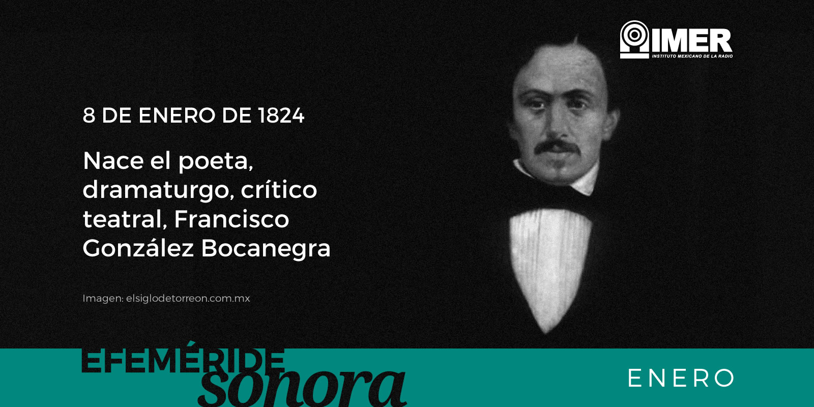 - 1824 – Nace Francisco González Bocanegra, poeta, dramaturgo, crítico teatral, orador y articulista mexicano, autor de la letra del Himno Nacional Mexicano. Escucha el programa “Cápsulas institucionales” en el que se aborda una breve biografía de González Bocanegra, transmitido en 1996.