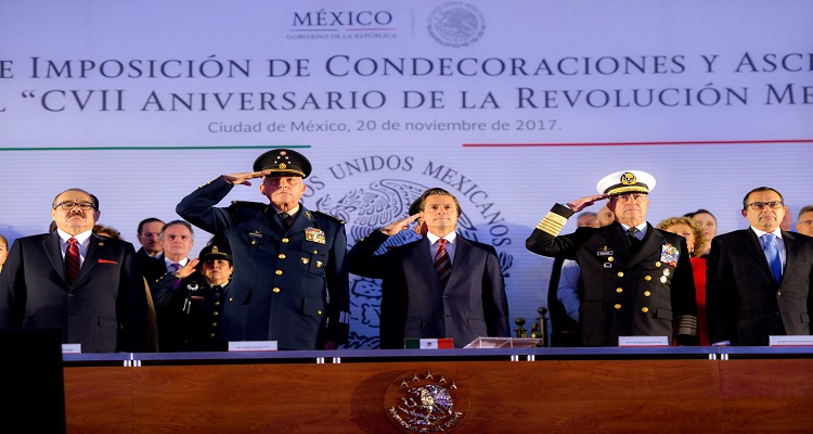 El Ejército mexicano solicitó nuevamente ayuda a las instituciones. El secretario de la Defensa Nacional, Salvador Cienfuegos, insistió ante el presidente Enrique Peña Nieto en la necesidad de que el Congreso apruebe la Ley de Seguridad Interior, una polémica norma que el PRI no ha podido sacar adelante en las cámaras ante las resistencias de la oposición. “[Requerimos] un marco jurídico no para otorgar beneficios o prerrogativas, sino para establecer limitaciones y obligaciones a las autoridades que constitucionalmente son las responsables de brindar seguridad a los mexicanos”, dijo el general el lunes ante el mandatario en un evento de condecoración a más de 30.000 soldados.