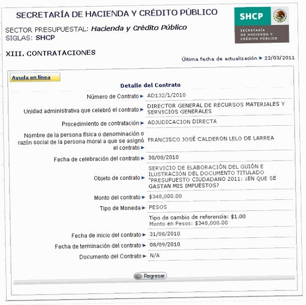de Hacienda y Crédito Público, a través de su Dirección de Recursos materiales y Servicios Generales ha expedido varios contratos al monero por diversos trabajos, así como por sus cartones políticos en el periódico Reforma.