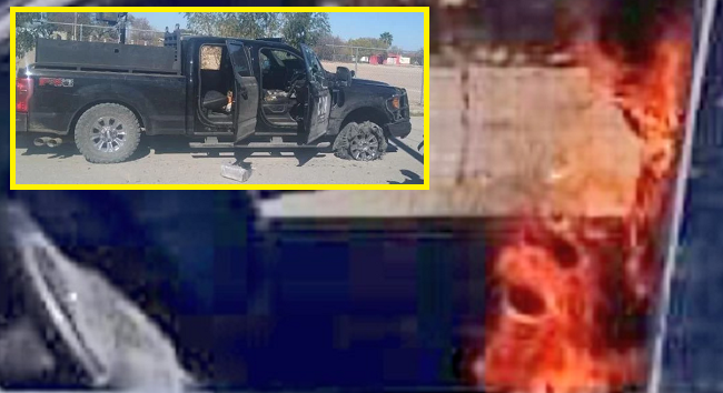 La imagen pertenece supuestamente a una de las camionetas del grupo delictivo que se estaba incendiando.