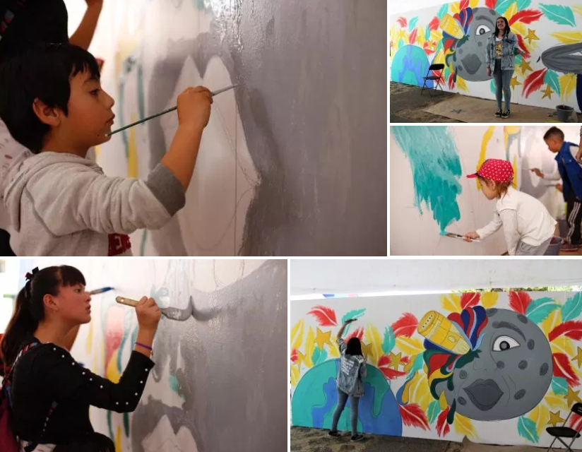 “Es un mural de mucho color, sólo se generó el diagrama y los niños fueron libres de pintar a su imaginación, pintaron estrellas, planetas y la Luna, recibieron una guía a través de las tonalidades, pero fueron libres de experimentar sus trazos y el color”, agregó.
