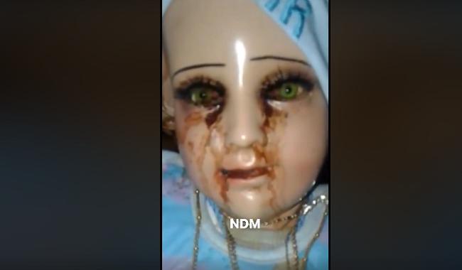 Las escalofriantes imágenes de la figura del Niño Dios que “llora” sangre se han hecho virales en redes sociales.