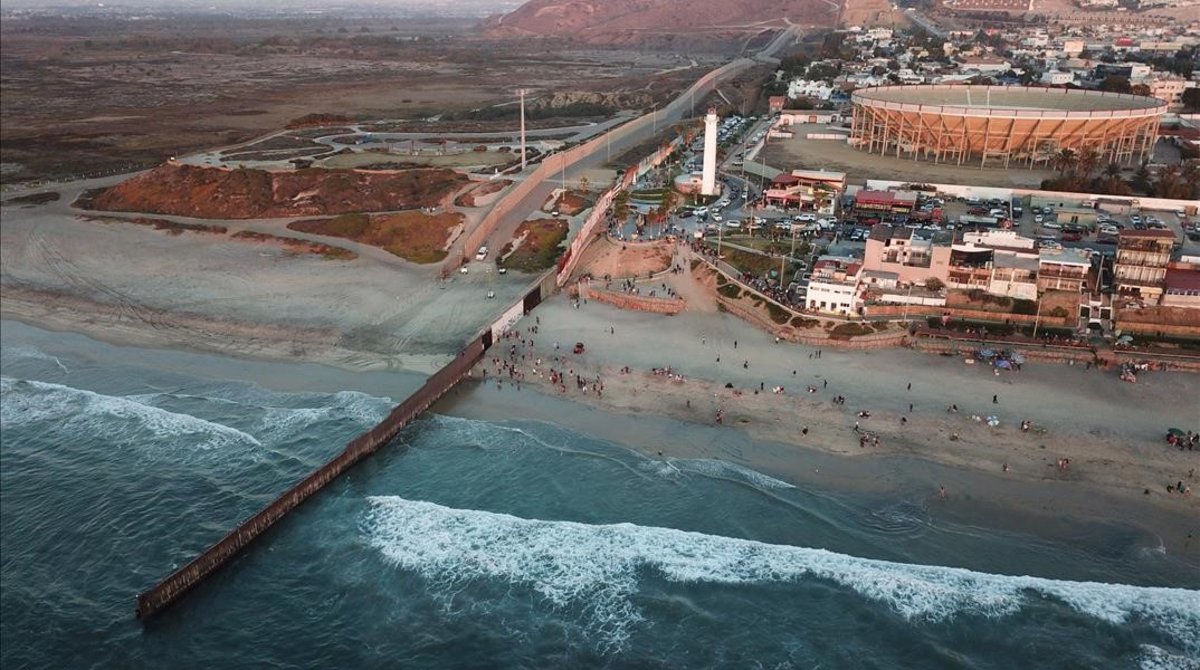 Imagen tomada con dron que muestra las dos vallas fronterizas que separan México y EEUU en la ciudad de Tijuana, en el estado de Baja California. /