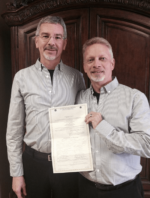 Fue así que finalmente el hombre aceptó ser un hombre gay, dejó el grupo que lideraba y anunció que se casaría con el amor de su vida: Larry McQueen, con quien contrajo matrimonio en 2014.