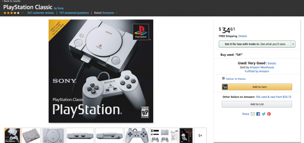Cuando pensábamos que el precio del PlayStation Classic no podía caer más en tiendas internacionales, nos llevamos la sorpresa de que algunas tiendas ya lo venden en menos de 40 dólares, que era el costo que tenía hace apenas algunas semanas. Para ser más exactos, se puede encontrar en Amazon de Estados Unidos en 34.61 dólares, que serían unos 650 pesos al tipo de cambio actual.
