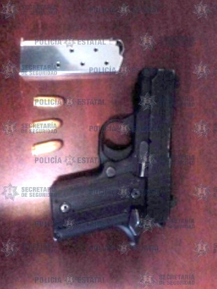 Al practicarle una revisión de rutina, se le encontró a la altura de la cintura una pistola marca SIG-Sauer, calibre .380, color negro, con tres cartuchos útiles.