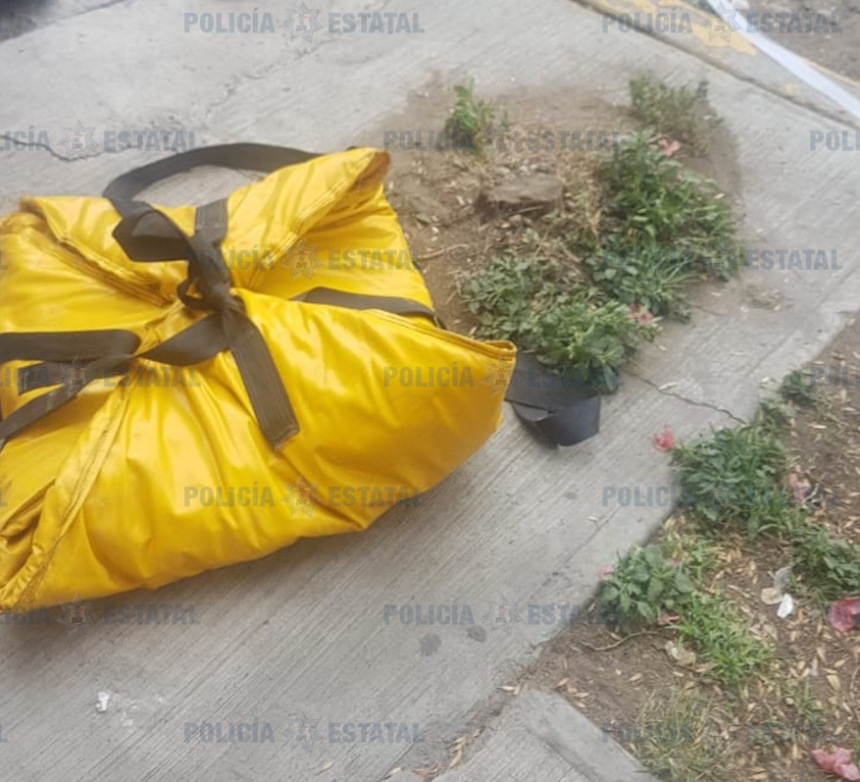 Mientras los Policías Estatales patrullaban sobre la calle Bosque de Ombúes, en la colonia Jardines de Morelos, Sección Bosques de este municipio, visualizaron sobre la banqueta una bolsa de color negra aparentemente abandonada.