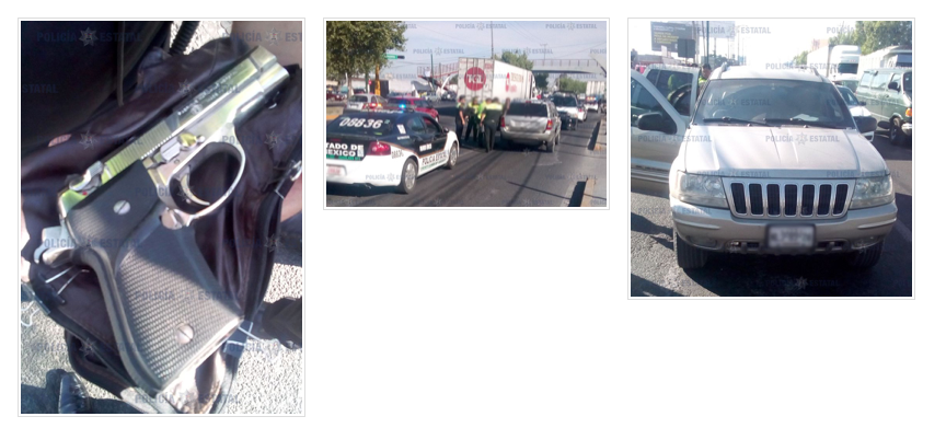 Los efectivos estatales realizaban recorridos de seguridad por calles del municipio de Metepec, cuando fueron alertados por compañeros de una persecución que se realizaba al conductor de una camioneta Jeep, tipo Cherokee, de color arena con matrícula del Estado de México.