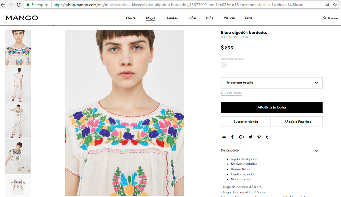 Mango, la empresa española de moda que no termina de decidirse si es “fast fashion” o una boutique de alta costura, tomó “prestada” una serie de bordados: no sólo los tenengos, también los huipiles oaxaqueños y los bordados florales de las faldas istmeñas, para decorar su colección otoño-invierno 2017.