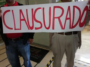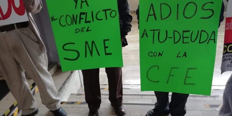 Donde clausuron simbólicamente las oficinas de cobro al exterior de las oficinas de pago de la CFE, estos solicitan tarifas más bajas y borrón y cuenta nueva de los deudores.