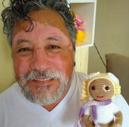 El hombre pensó en su propia situación y creo a “Vitilinda”, una muñeca que presenta algunas decoloraciones en la piel al igual que él.