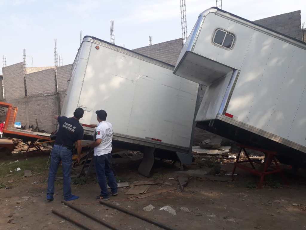 Elementos de la Fiscalía Especializada en la Investigación del Delito de Robo de Vehículo Zona Oriente, de esta Fiscalía General de Justicia del Estado de México (FGJEM) en conjunto con elementos de la Policía Municipal de La Paz, catearon un inmueble en este municipio en donde fueron asegurados vehículos y cajas de tráiler con alteraciones en los números de identificación.