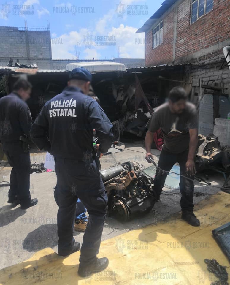 Texcoco, Estado de México, 19 de septiembre de 2019.- Elementos de la Secretaría de Seguridad (SS), en coordinación con personal de la Fiscalía General de Justicia (FGJEM), cumplimentaron una orden de cateo en un inmueble, donde presuntamente se desvalijaban y alteraban en medios físicos, vehículos con reporte de robo.