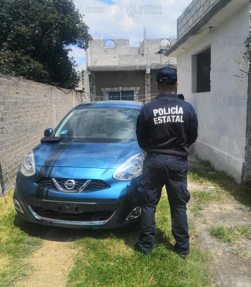 Personal adscrito a la Dirección General de Combate al Robo de Vehículos y Trasporte (DGCRVyT) y del Ministerio Público, recuperaron en el lugar un vehículo Nissan tipo March de color azul, mismo que tenía alterados los medios físicos de identificación, además de contar con reporte de robo vigente.