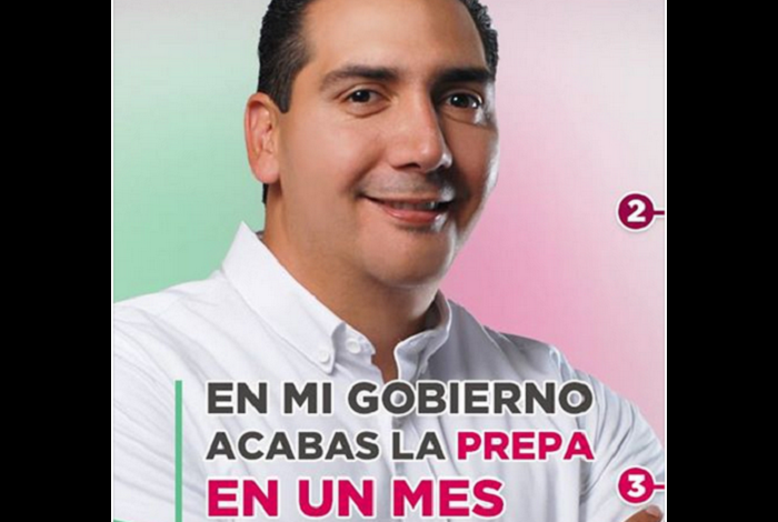 Bahía de Banderas, Nay.- El candidato a alcalde de Bahía de Banderas, Nayarit por el PRI, Héctor Santana, publicó en su página de Facebook, como promesa de campaña que de ganar las elecciones, en su administración los jóvenes acabarán la prepa en sólo un mes.