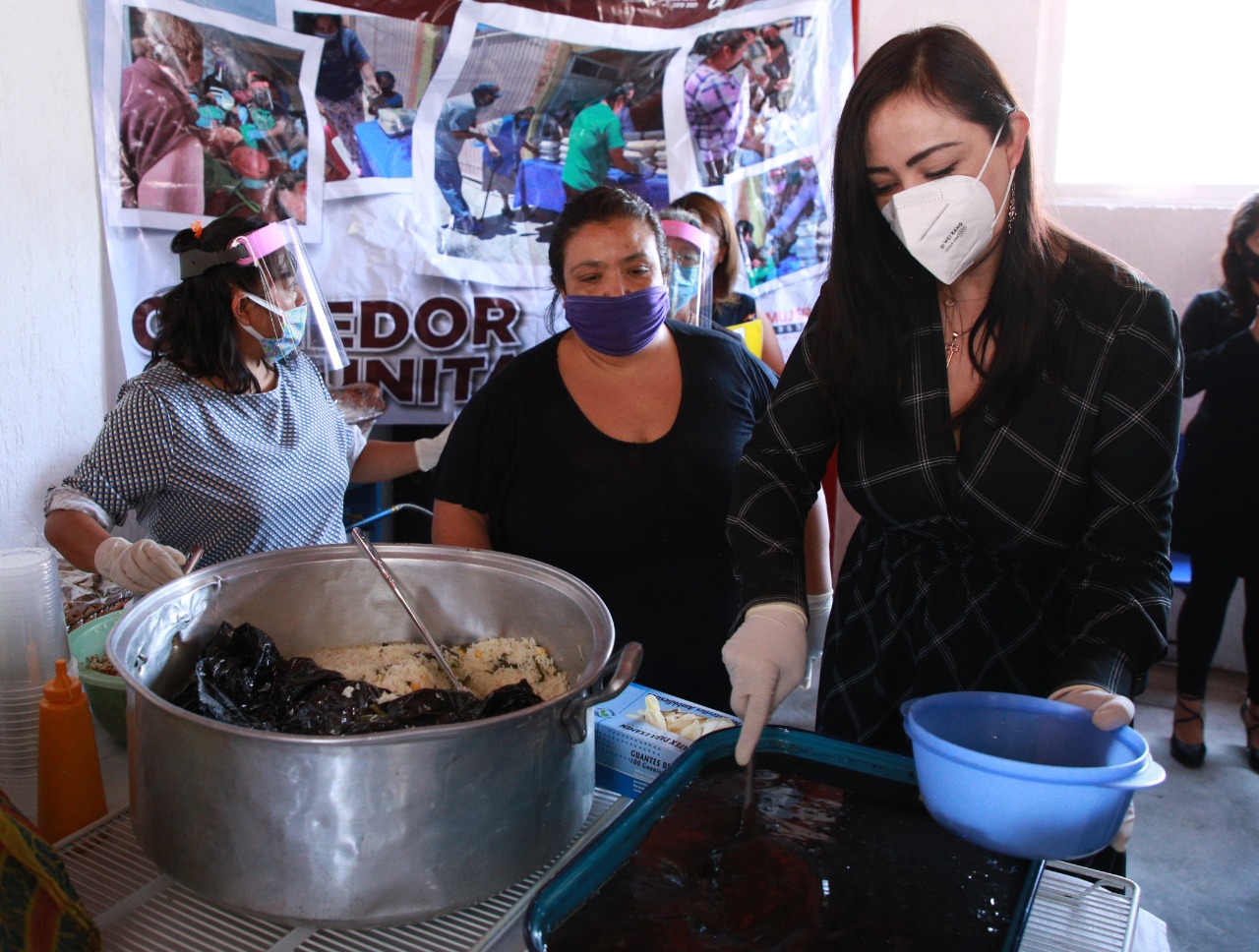 Asimismo, la Presidenta Municipal reconoció la labor de las y los colaboradores, quienes de manera voluntaria preparan los guisados para las familias de la comunidad.