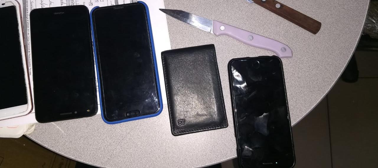 3. Una vez asegurados, se les encontró entre sus pertenencias un cuchillo con el que amagaban a sus víctimas, así como dinero y celulares.