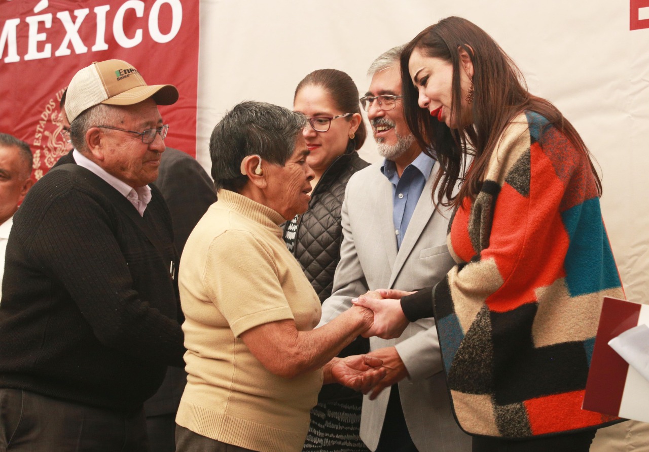 En la entrega estuvo acompañada de Edmundo Cruz Martínez, subdirector de Estrategias del Suelo Sustentable y responsable de la delegación del Instituto Nacional del Suelo Sustentable (INSUS) en el Estado de México, así como del delegado del Instituto Mexiquense de la Vivienda Social (IMEVIS), Abraham Rubí Avilés.