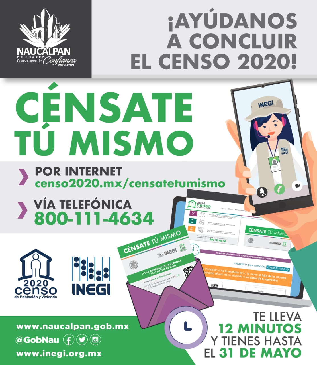 Los usuarios que hayan recibido la carta invitación “Cénsate tú mismo” deberán ingresar al sitio web https://censo2020.mx/censatetumismo/ o comunicarse al número 800 114 634 para responder el cuestionario vía internet o telefónica, ejercicio que toma alrededor de 12 minutos.