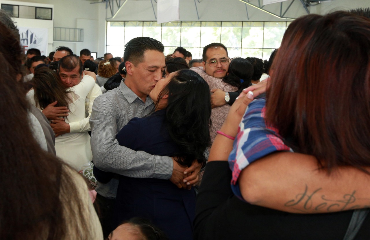 Durante la ceremonia, en el Centro de Exposiciones, Ferias y Eventos (CEFE), se observó a parejas recientes y a personas con décadas en unión libre. Tal es el caso de Jehú Pérez Trejo y Gloria García, que después de 45 años de compañía legalizaron su relación.